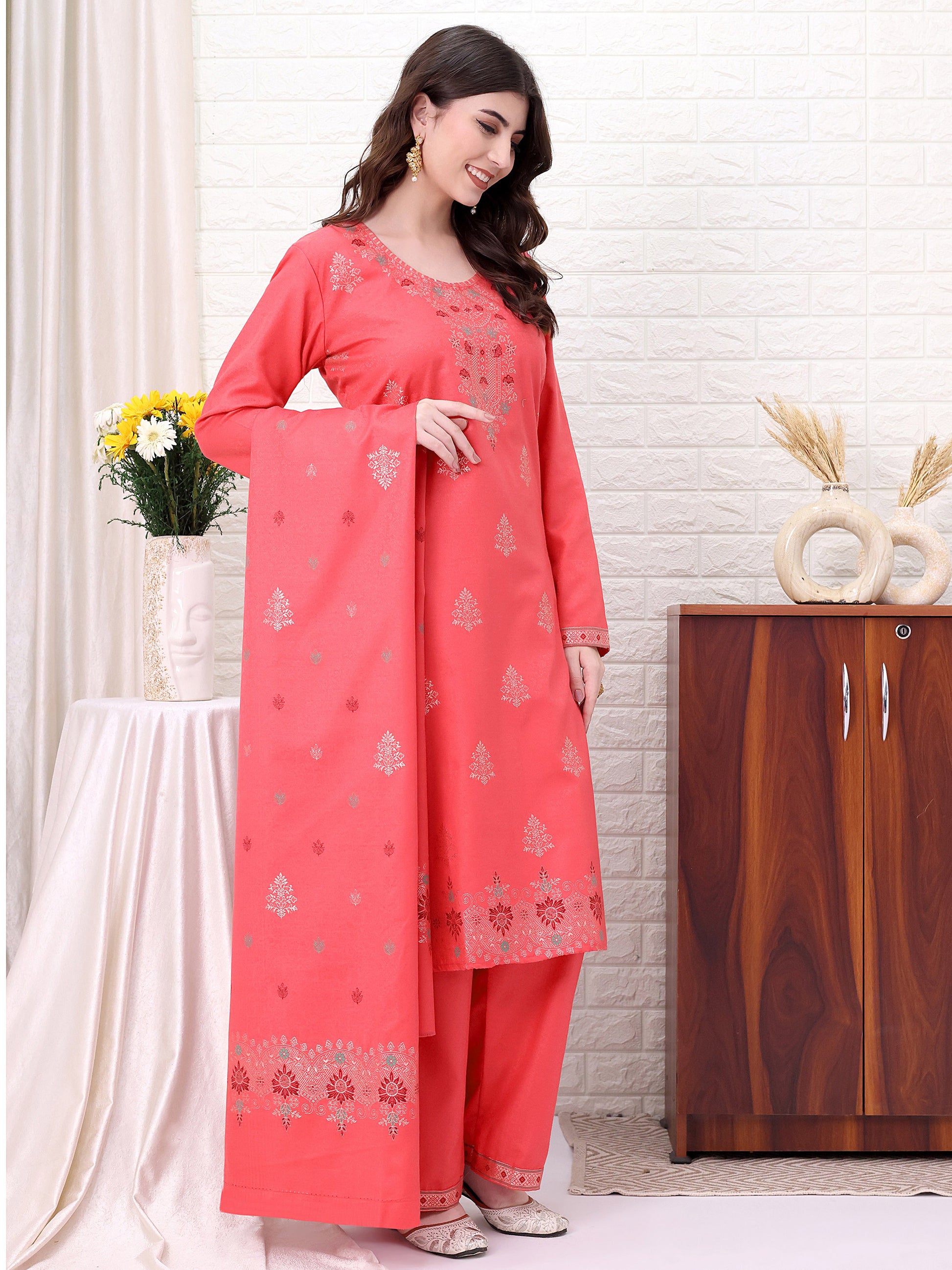 Experience the unmatched softness and natural warmth of premium Pashmina wool, crafted as unstitched lengths so you can tailor a perfect-fit suit that reflects your style. Each piece features rich, fade-resistant colours and a luxurious drape that keeps you cosy through pre-winter and winter months.