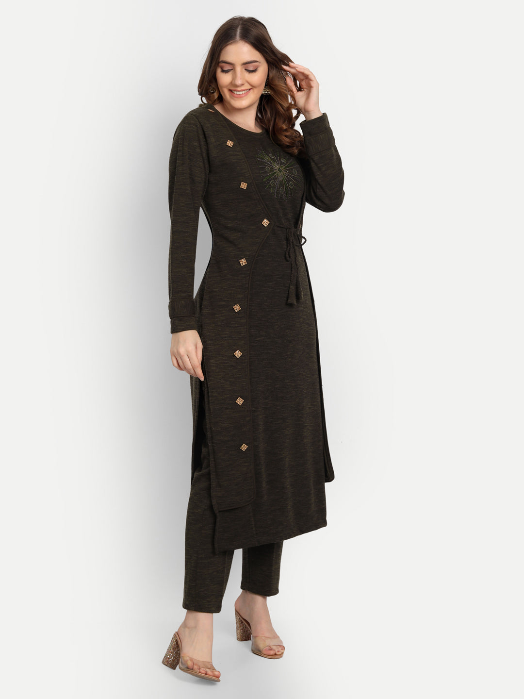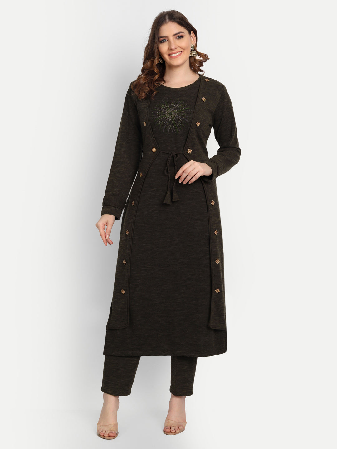 Elevate your winter wardrobe with this kurta set crafted from a luxe blend that feels warm without weighing you down. Features full-length sleeves, contemporary straight fit for an instant ethnic look. Subtle embroidery and clean finishes make it ideal for Diwali evenings, family lunches, and everyday office tradition. Breathable lining keeps you cozy; machine-washable on gentle cycle.