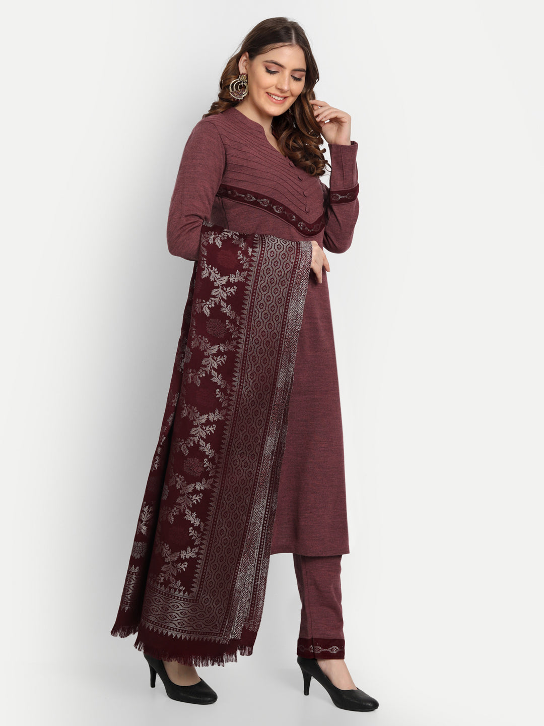 Elevate your winter wardrobe with this kurta set crafted from a luxe -blend that feels warm without weighing you down. Features full-length sleeves, contemporary straight fit, and a coordinated dupatta for an instant ethnic look. Subtle and clean finishes make it ideal for Diwali evenings, family lunches, and everyday office tradition. Breathable lining keeps you cozy; machine-washable on gentle cycle.
