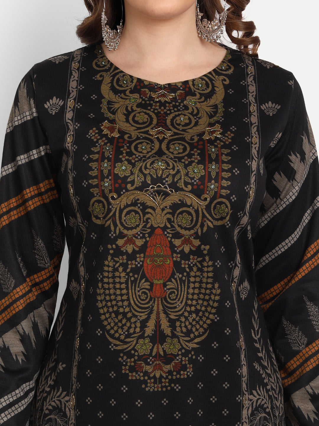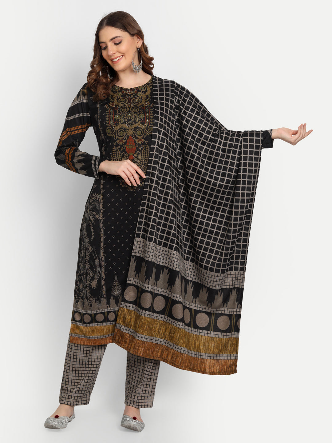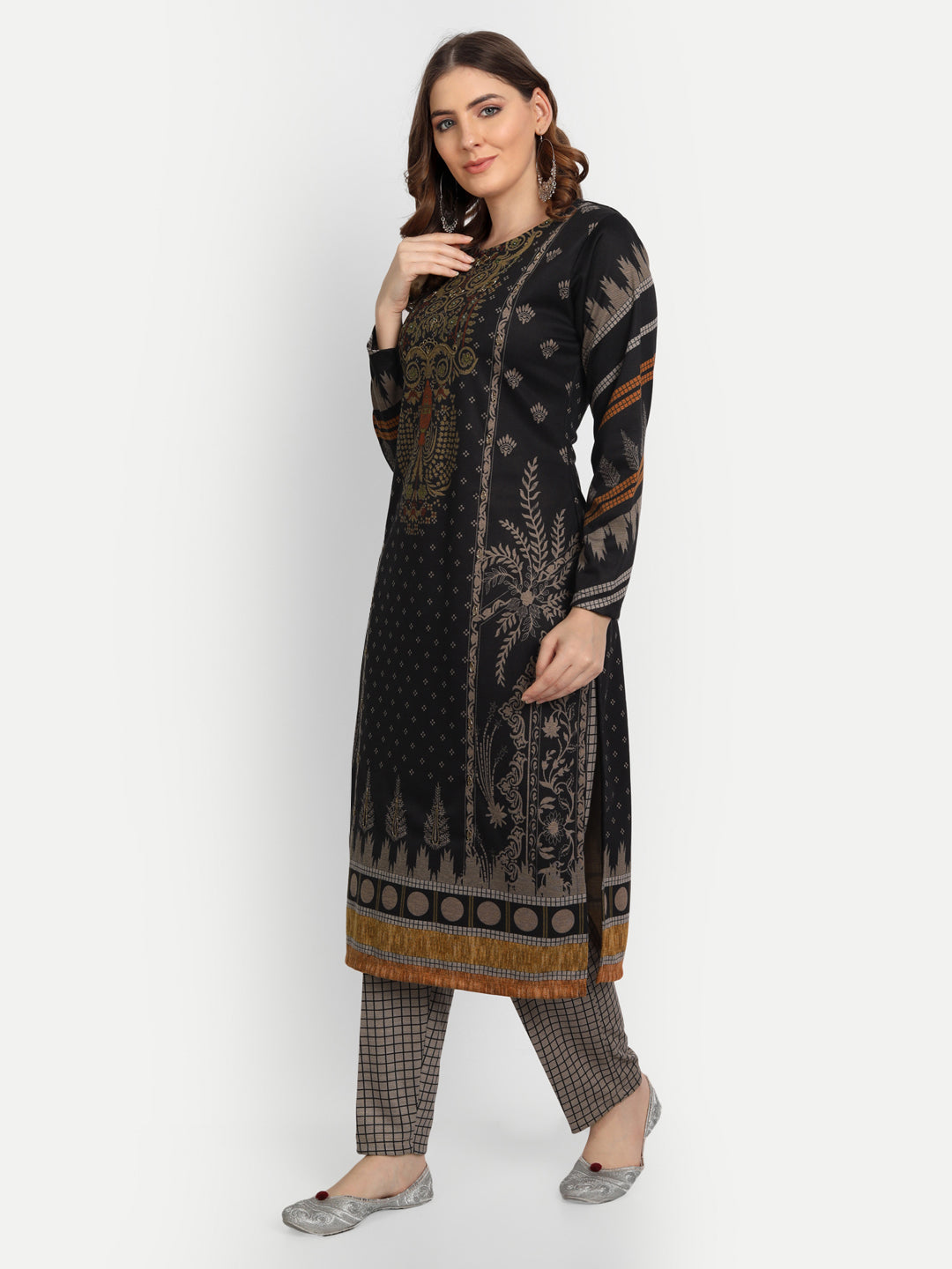 Elevate your winter wardrobe with this kurta set crafted from a luxe -blend that feels warm without weighing you down. Features full-length sleeves, contemporary straight fit, and a coordinated dupatta for an instant ethnic look. Subtle and clean finishes make it ideal for Diwali evenings, family lunches, and everyday office tradition. Breathable lining keeps you cozy; machine-washable on gentle cycle.